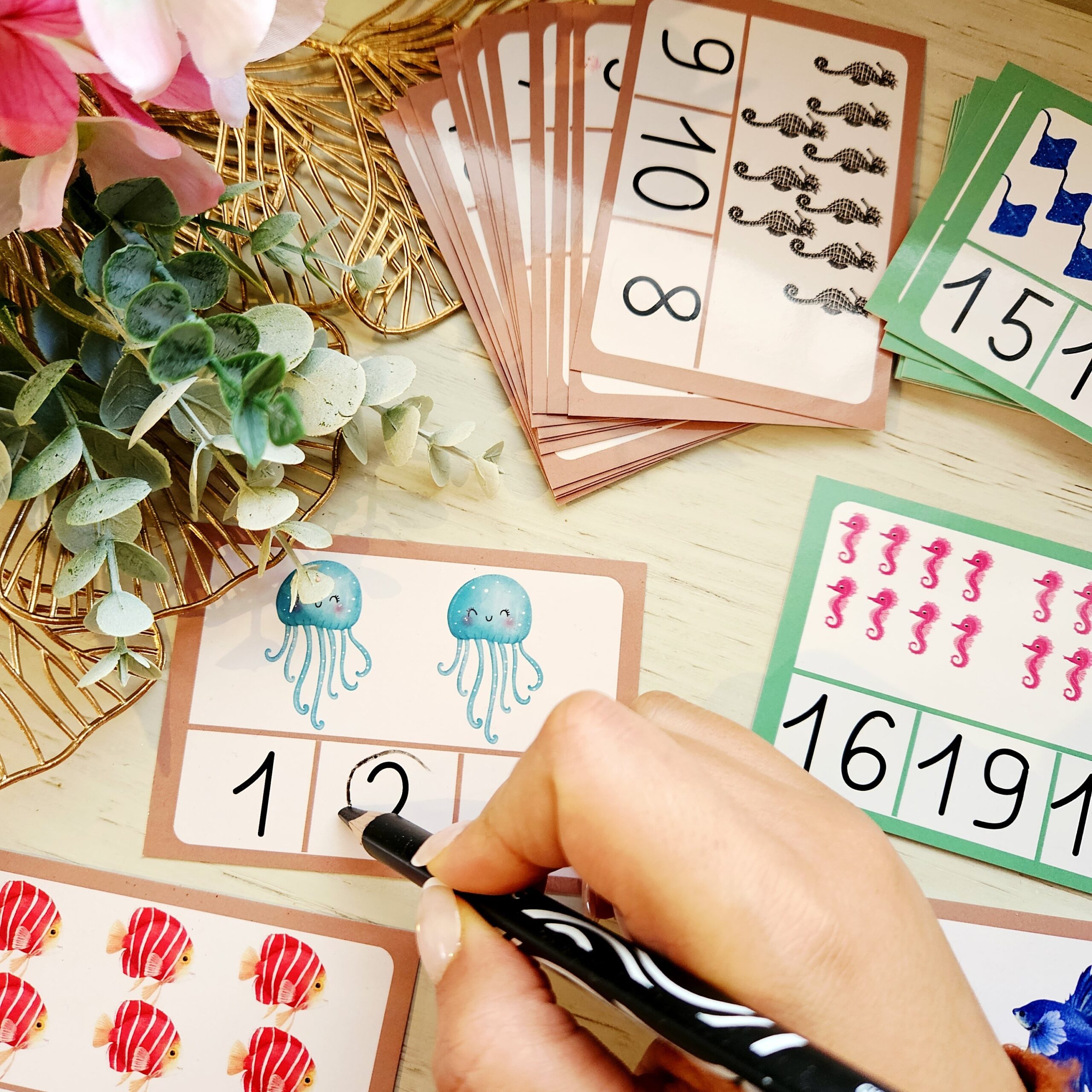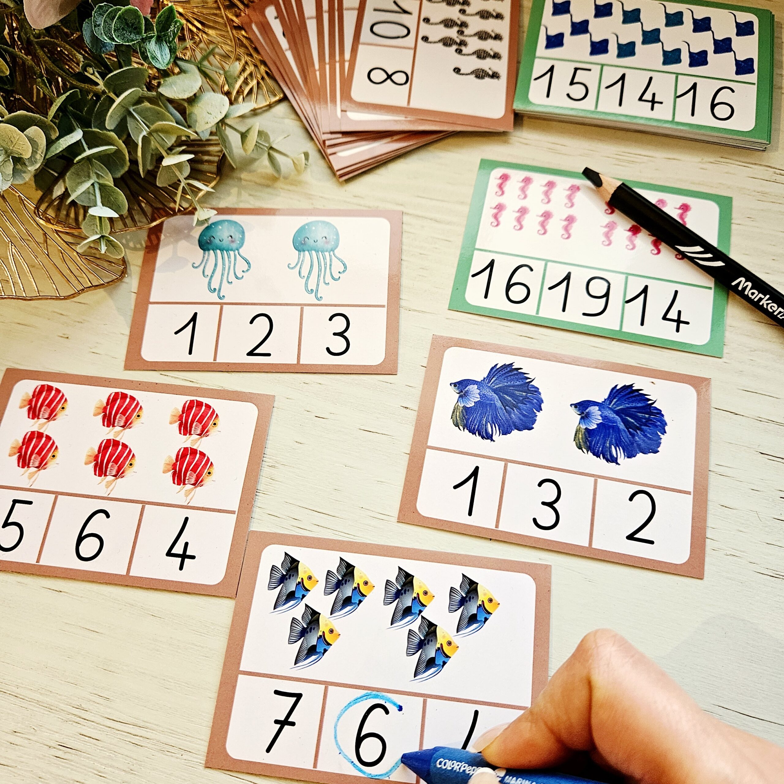 Un jeu de 32 cartes pour apprendre à compter jusqu’à 20 grâce à un système d’autocorrection.