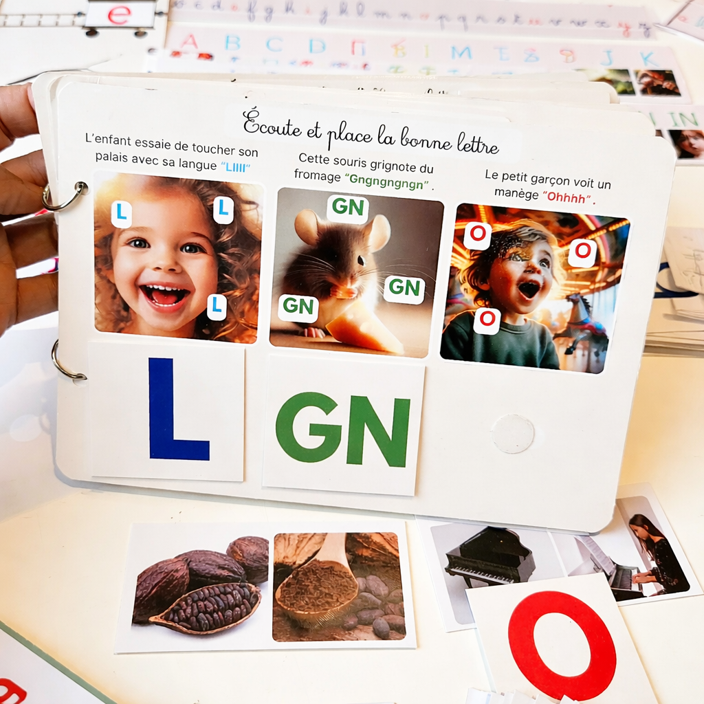 Ici, on ne “récite” pas les lettres : on écoute le son, on le vit dans une situation parlante, on le touche, on le répète, et on le manipule.