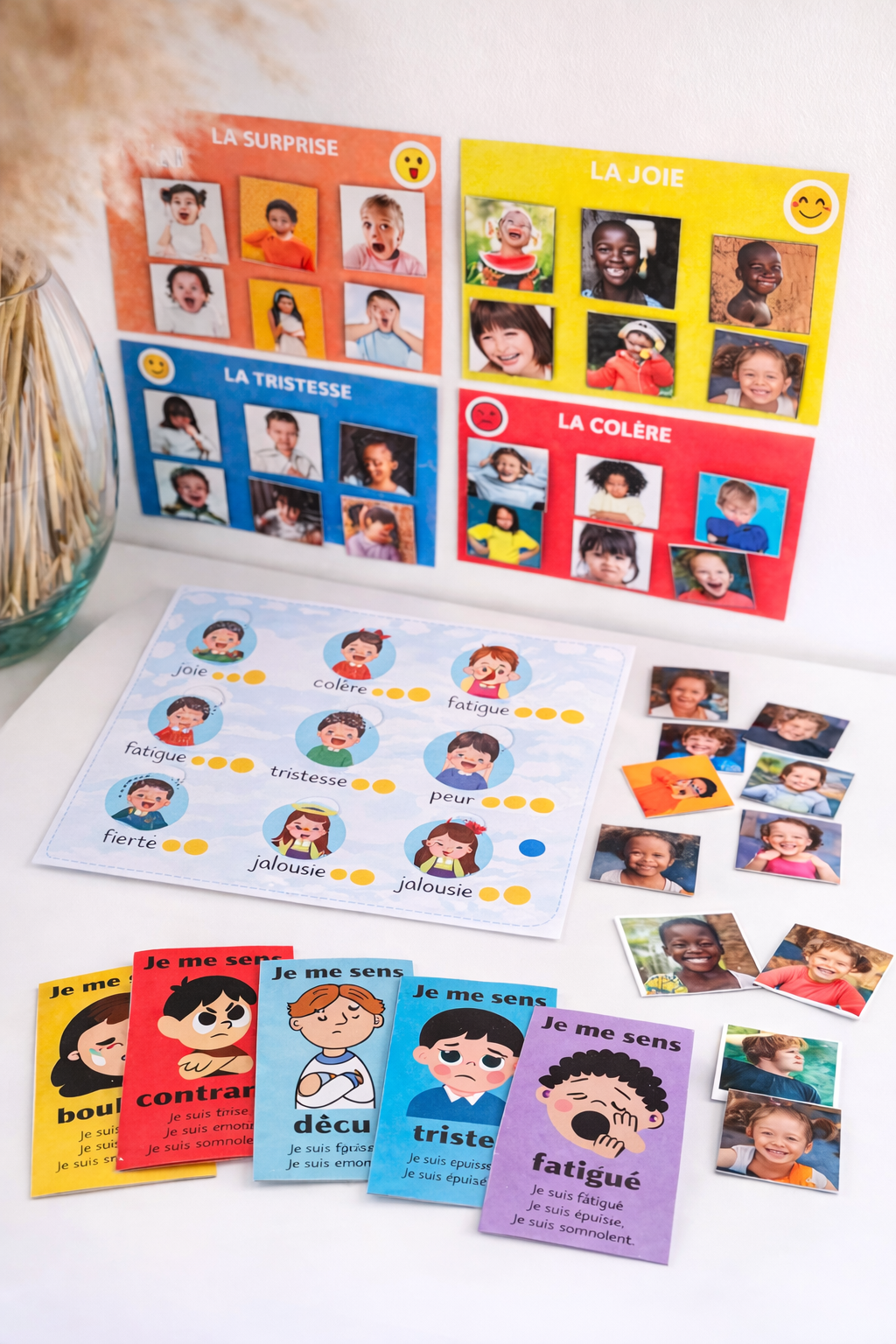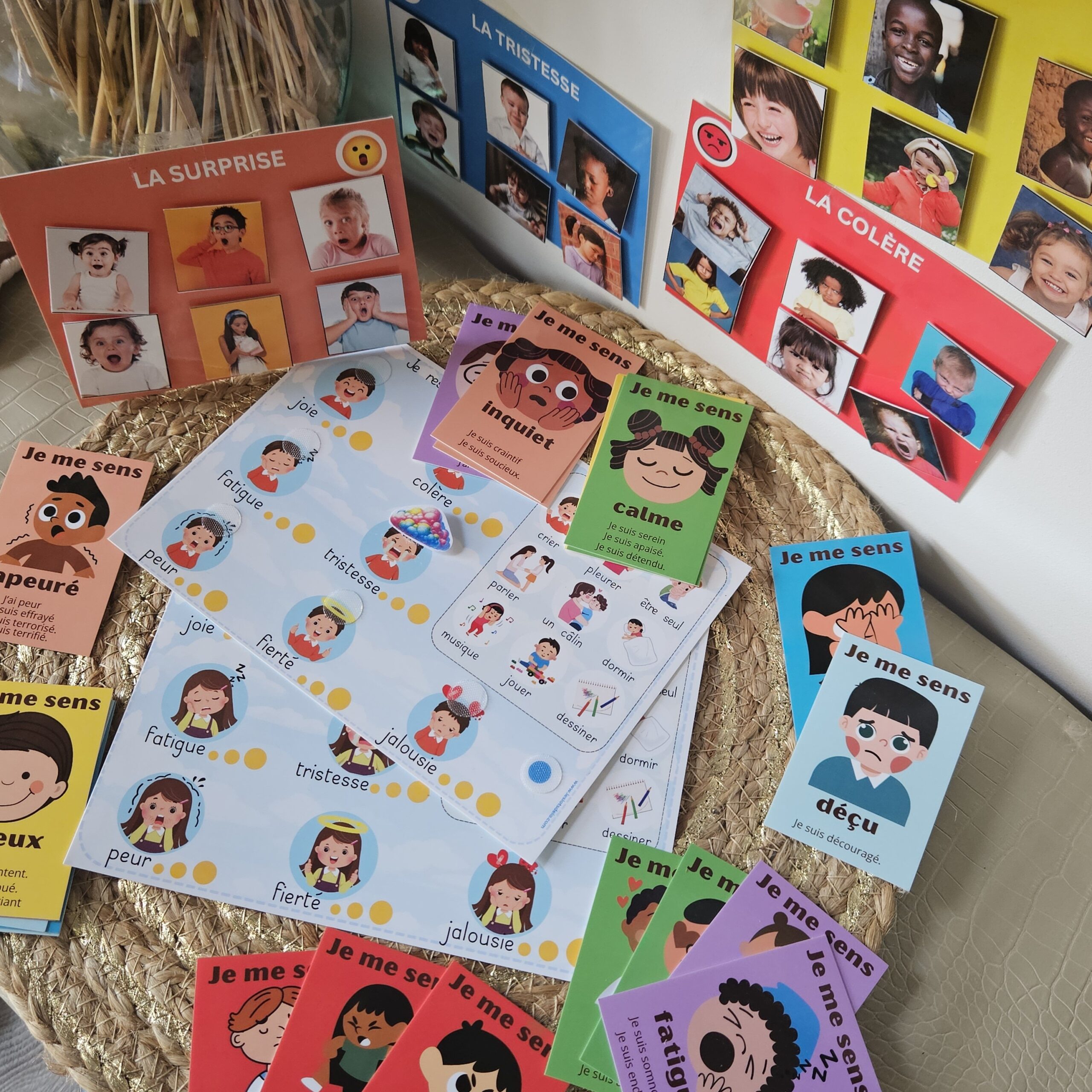 Aidez votre enfant à explorer et comprendre ses émotions avec ce pack complet ! Comprenant 26 cartes d’émotions, un jeu de loto, un tableau interactif et des fiches pédagogiques.s.