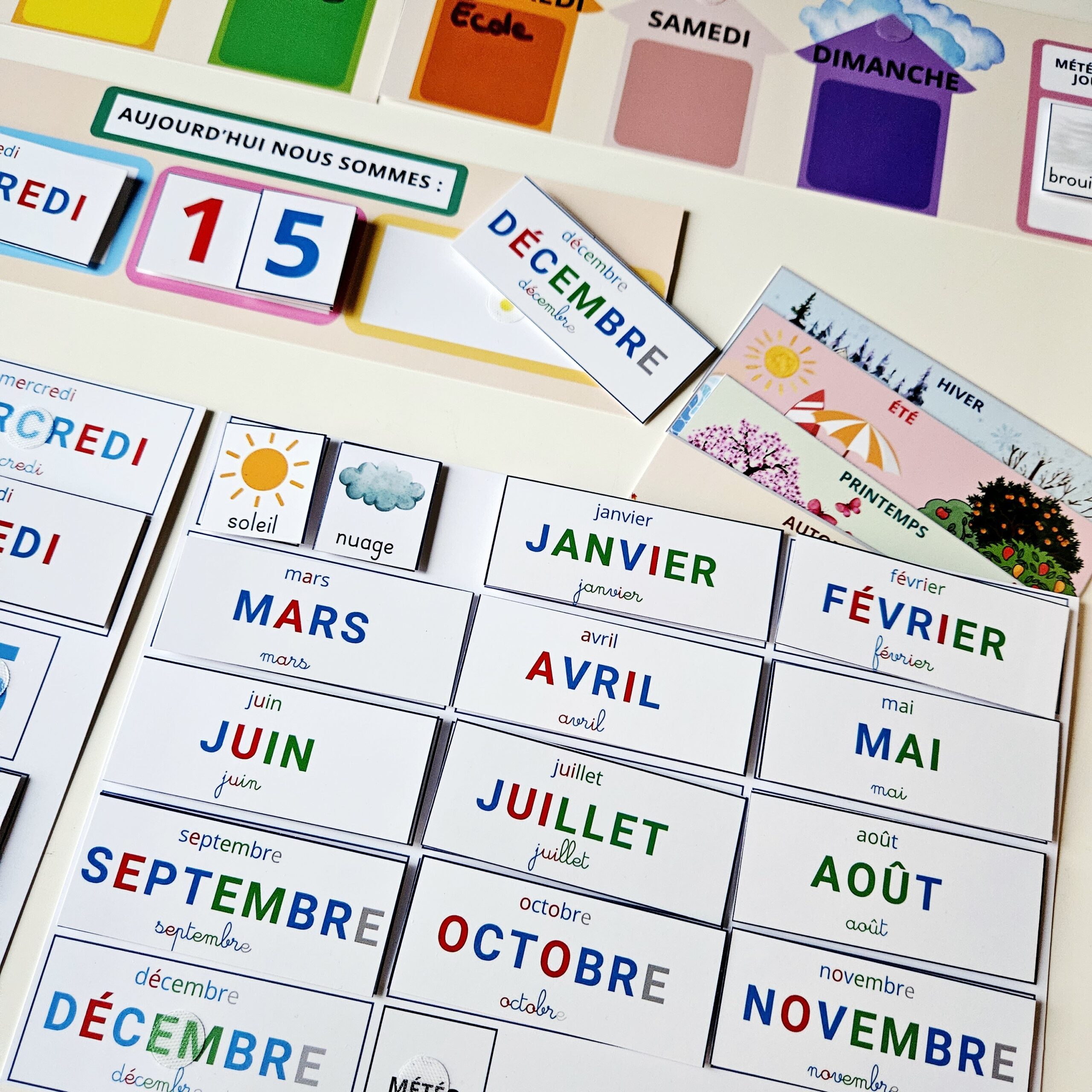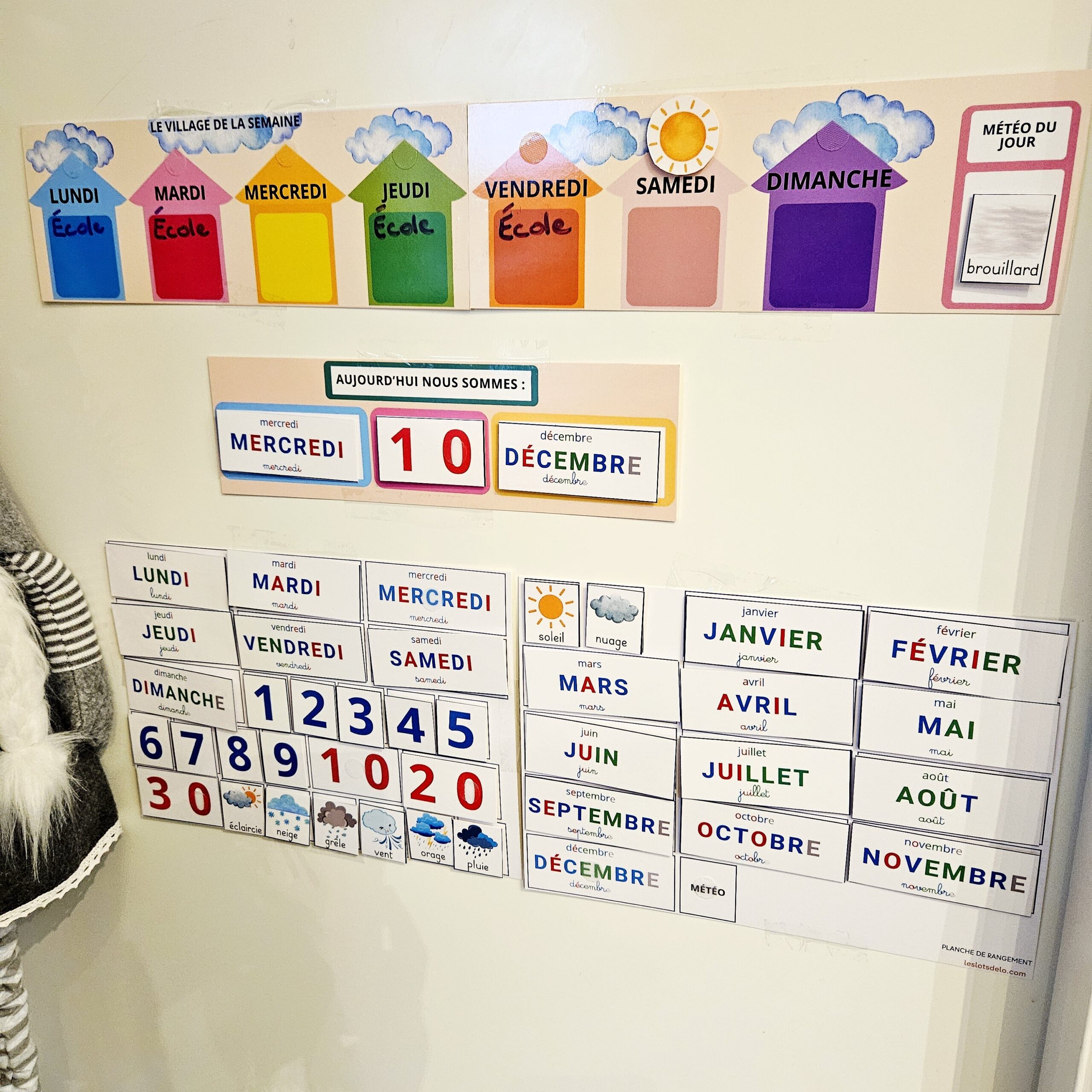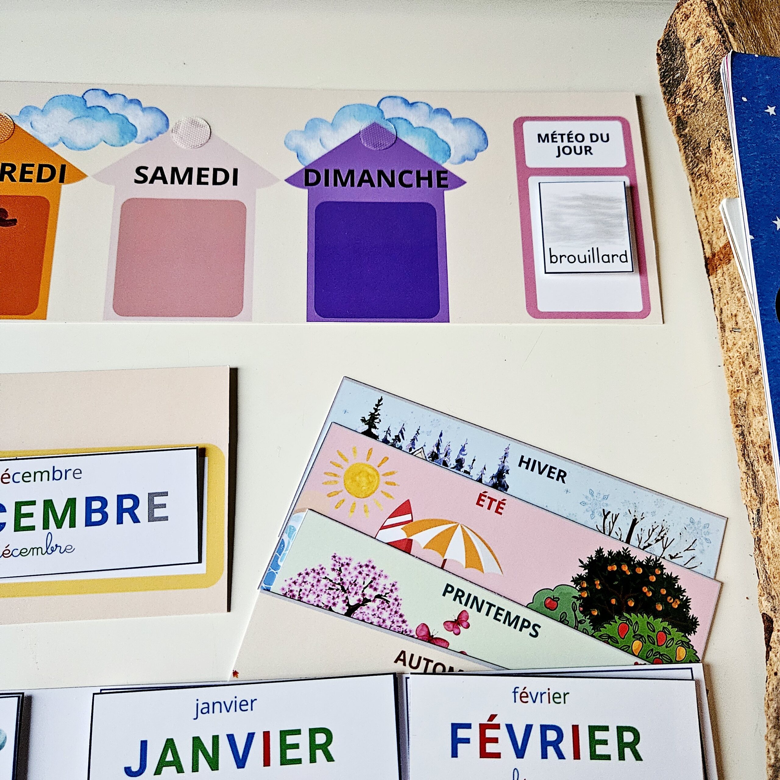 Un pack complet, coloré et ludique pour aider les enfants à comprendre les jours, les mois, les saisons et la météo. L’enfant place le jour dans le “village de la semaine”, écrit les événements importants, ajoute la date et la météo du jour. Un rituel simple pour structurer le temps… et commencer la journée sereinement !